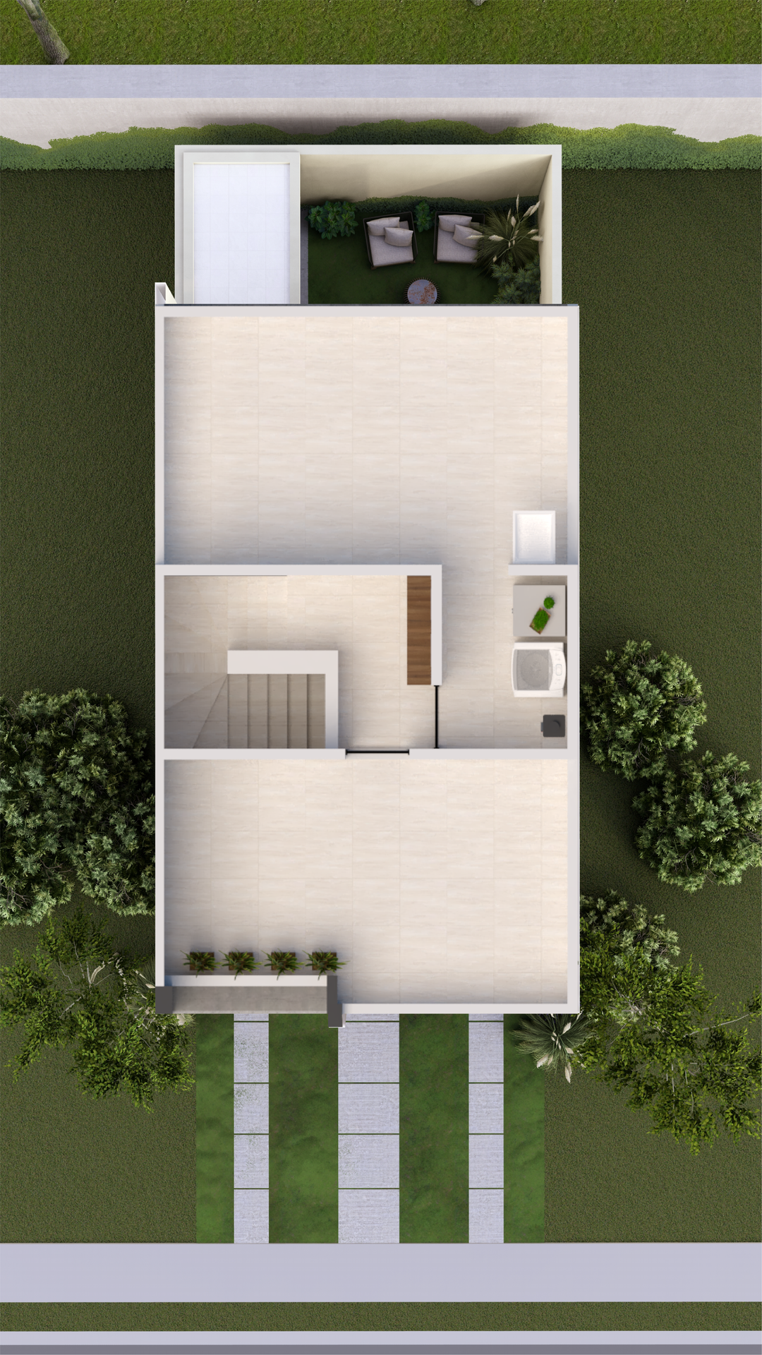 Planta Alta: Recámara con vestidor y baño completo, 2 habitaciones secundarias y baño completo compartido.